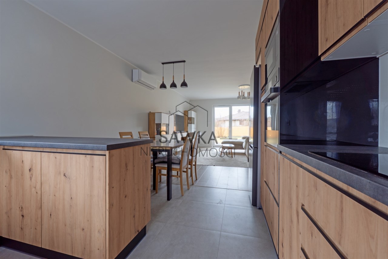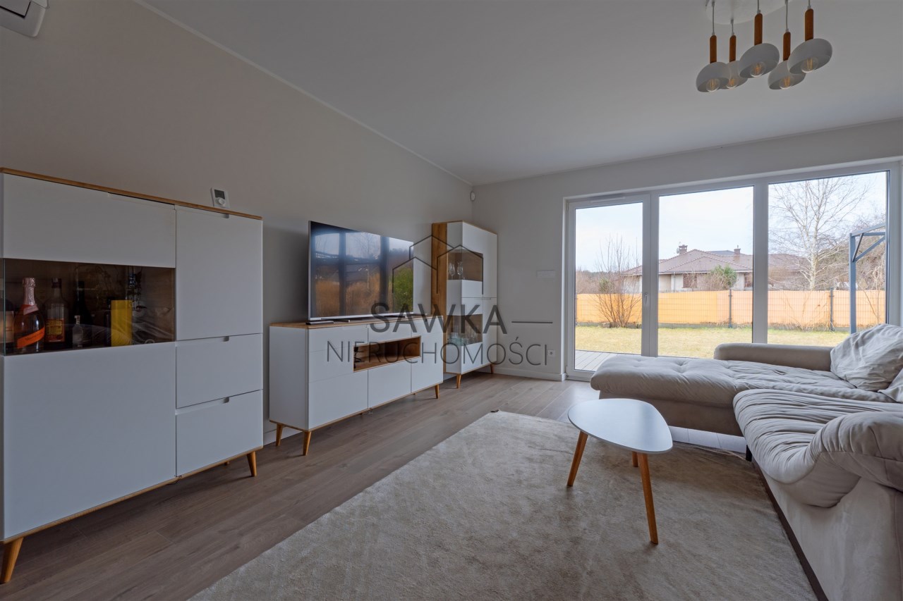 - przestronny salon z aneksem kuchennym i wyjściem do ogrodu