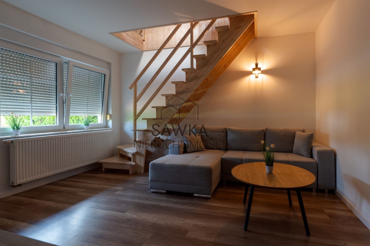 • 3 apartamenty dwupoziomowe aneksami kuchennymi i łazienkami – ok. 30 m2 każdy + poddasze, na którym znajduje się sypialnia,