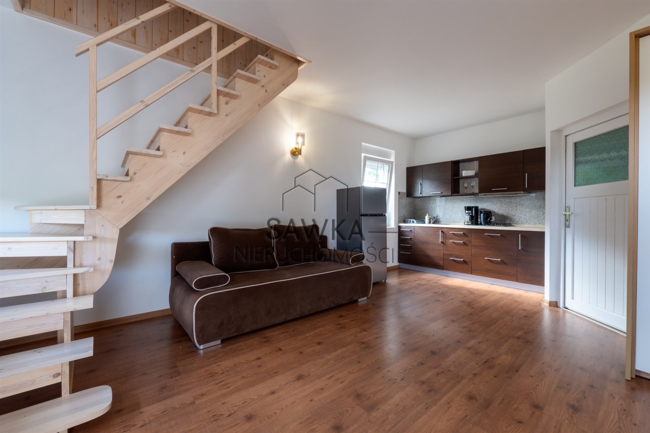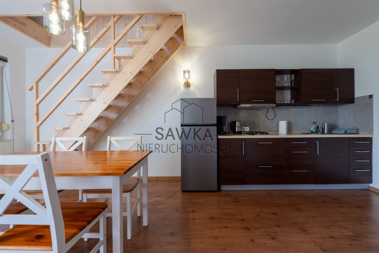 • 3 apartamenty dwupoziomowe aneksami kuchennymi i łazienkami – ok. 30 m2 każdy + poddasze, na którym znajduje się sypialnia,